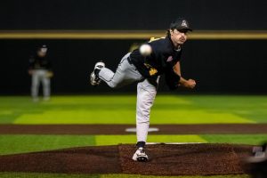 Overall, the Mountaineers looked sharp at the plate and solid in the field. The team turned several double plays, including a “strike ‘em out, throw ‘em out” executed by senior right-handed pitcher Carter Stanford and redshirt freshman catcher Brooks Wright in the top of the sixth inning. After Aggies infielder JT Taylor got a base hit, Stanford struck out catcher Tyler Smith on three pitches, and Wright threw out Taylor trying to steal second base immediately after Taylor was retired.