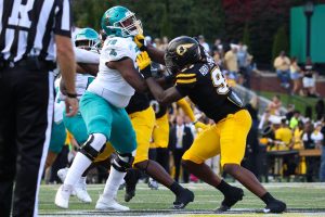 The Black and Gold’s offense started hot. Redshirt sophomore quarterback JJ Kohl and redshirt sophomore wide receiver Davion Dozier linked up for a 15-yard score. Dozier would finish the game with 4 receptions on 8 targets for 70 yards.